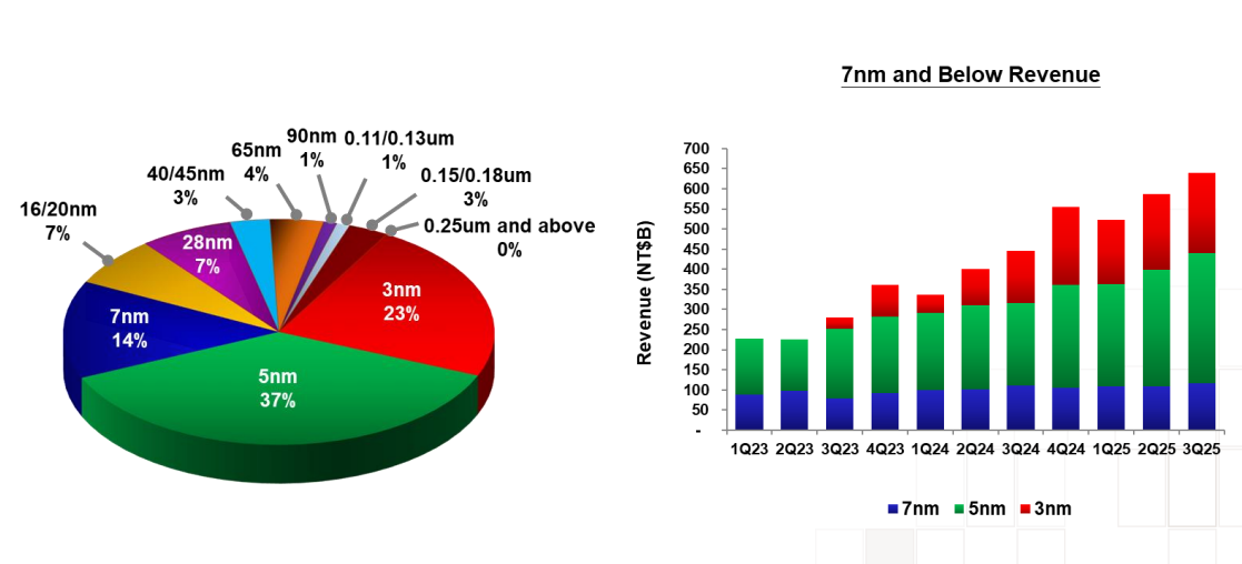 先进制程占据营收主导地位营收增长得益于先进制程技术的强劲需求,具体来看: